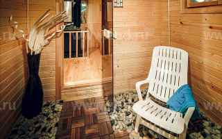 | Потолки отделаны вагонкой, утепление 50 мм, утепление в парной 150 мм | Парная Стены и потолок обшиты осиновой вагонкой, полки с настилом из осины, дверь стеклянная |