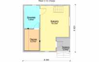 Ваша дачная жизнь может начаться именно с этой постройки. Выбрав её, Вы будете иметь у себя на участке и баню, и дачный дом, и домик для гостей. Такая универсальность объясняется планировкой. На первом этаже располагается парная, душевая и комната отдыха, которая в зависимости от особенностей эксплуатации дома может использоваться как небольшой, но уютный зал. Мансарда, если её грамотно меблировать, превращается в спальню, либо в дополнительную комнату отдыха, где можно уединиться. Небольшая терраса придаёт этой бане законченный нарядный вид, особенно, если её декорировать цветами.