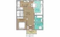 При своих компактных размерах дом Олимп-4 располагает внушительным набором помещений, который обеспечивает комфортное пребывание и жизнь большой семьи. В этом доме предусмотрена просторная общественная зона, связанная студийной планировкой, что очень удобно для проведения досуга в кругу семьи и приема гостей. В то же время на первом этаже есть изолированная комната, которая может служить спальней для пожилых людей, гостевой комнатой или кабинетом. На обоих этажах расположены просторные санузлы.