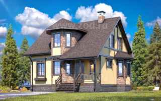 Этот компактный коттедж не займет много места на участке. Между тем, внутри он достаточно просторный и удобный для жизни. Пять отдельных комнат, не считая гостиной и кухни, позволят с комфортом разместиться большой семье. Эркер в два этажа не только украшает дом, но и добавляет ему полезной площади.