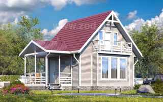 В этом доме с комфортом разместится семья из 2-3 человек. На первом этаже расположены холл, кухня и гостиная, на мансардном предусмотрена спальня. Пристройка террасы или веранды поможет создать дополнительные зоны отдыха и хранения вещей.