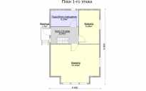 На первом этаже расположена просторная гостиная, кухня и вместительное подсобное помещение, на мансардном – две спальни. Пристройка террасы или веранды поможет создать дополнительные зоны отдыха и хранения вещей.