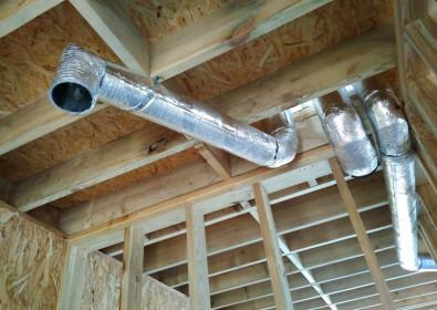 Система, которую мы проектируем для своих клиентов, представляет собой несколько вентиляционных каналов, проведенных на крышу из помещений с повышенной влажностью или усиленным выделением запахов – кухни, санузла, котельной. Они имеют в основе гибкий каркас, покрытый алюминиевой фольгой с утеплителем, что предотвращает образование конденсата.