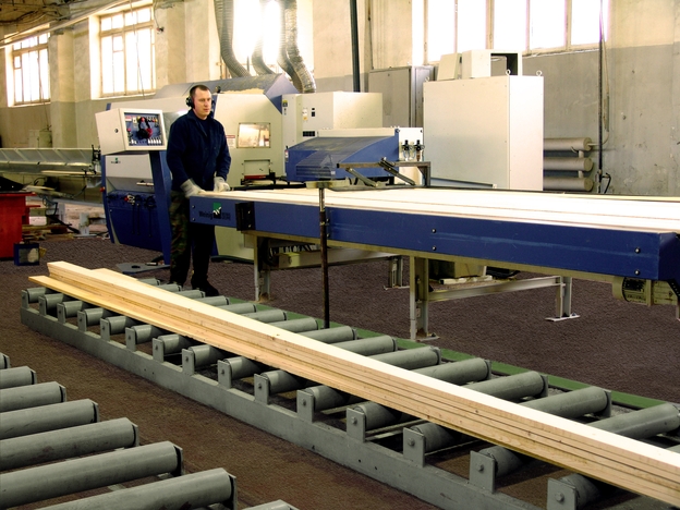 Строгальное отделение – деление, предварительная калибровка и строжка пиломатериалов. Основное технологическое оборудование – многопильный станок Raimann – ProfiRip KM 310, делительный станок Waco - BKL-Twin, гидромат Weinig - Н 22B (скорость подачи 120м/мин.), два гидромата Weinig - Н2000 (скорость подачи 80м/мин.)