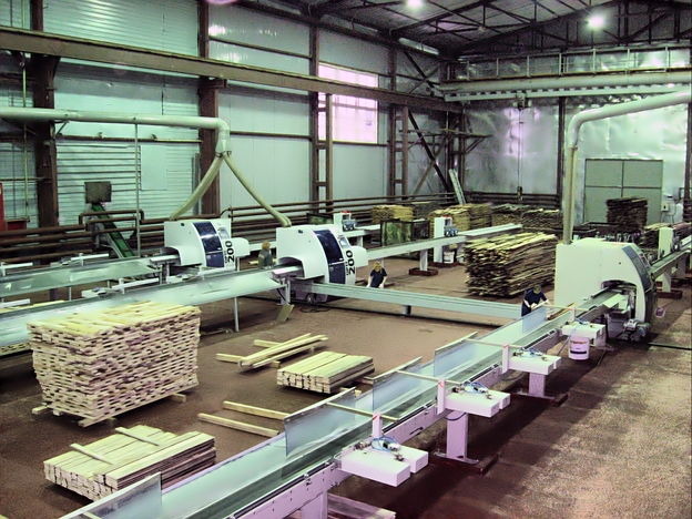 Отделение предварительной обработки – торцовка и продольное сращивание пиломатериалов. Основное технологическое оборудование - три торцовочно- оптимизирующие линии Dimter - Opticut 200 Elite, две линии сращивания GreCon - Ultra 2, линия сращивания GreCon - Ultra 2 TT3000.