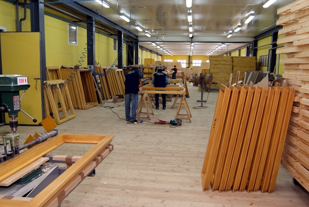 На производственных площадях общей площадью 4500 м2 установлено современное столярное оборудование европейских марок: угловой обрабатывающий центр для производства окон GAM-33 COLOMBO, двусторонний шипорез CHELASCHI TI 240 , шлифовальные, токарные, фрезерные и другие необходимые станки, позволяющие производить столярные изделия (окна, двери, лестницы, декоративные элементы и т.п.) любой сложности и отвечающие самым высоким стандартам.